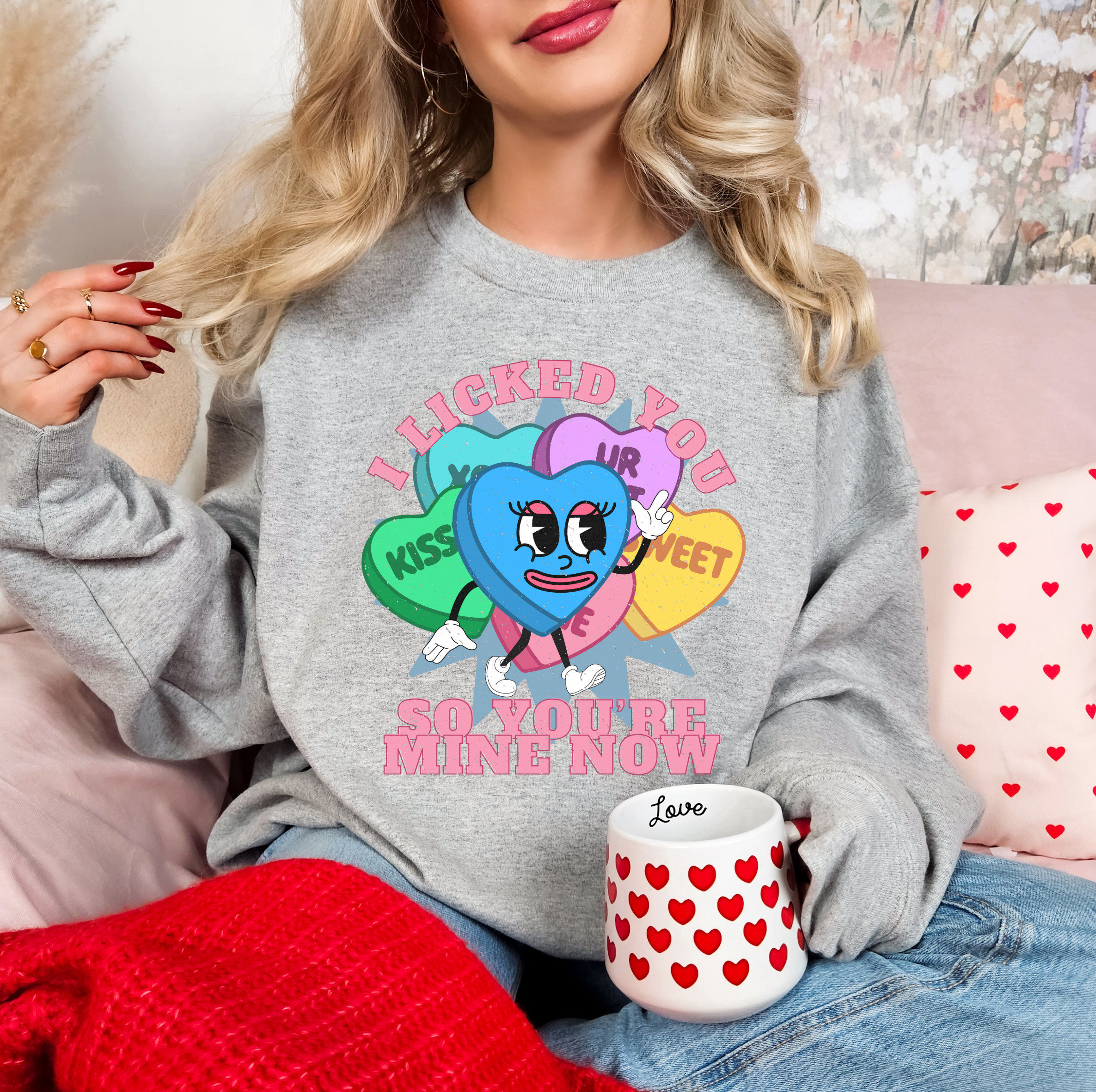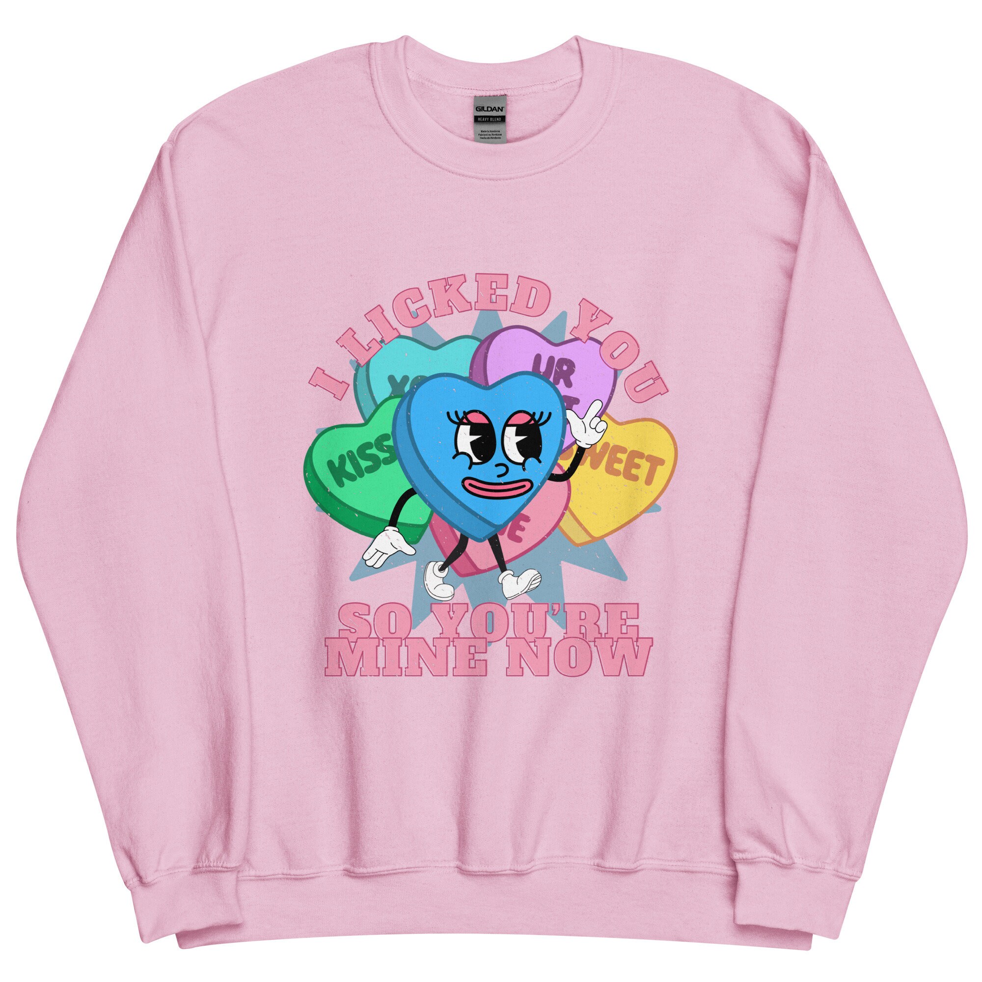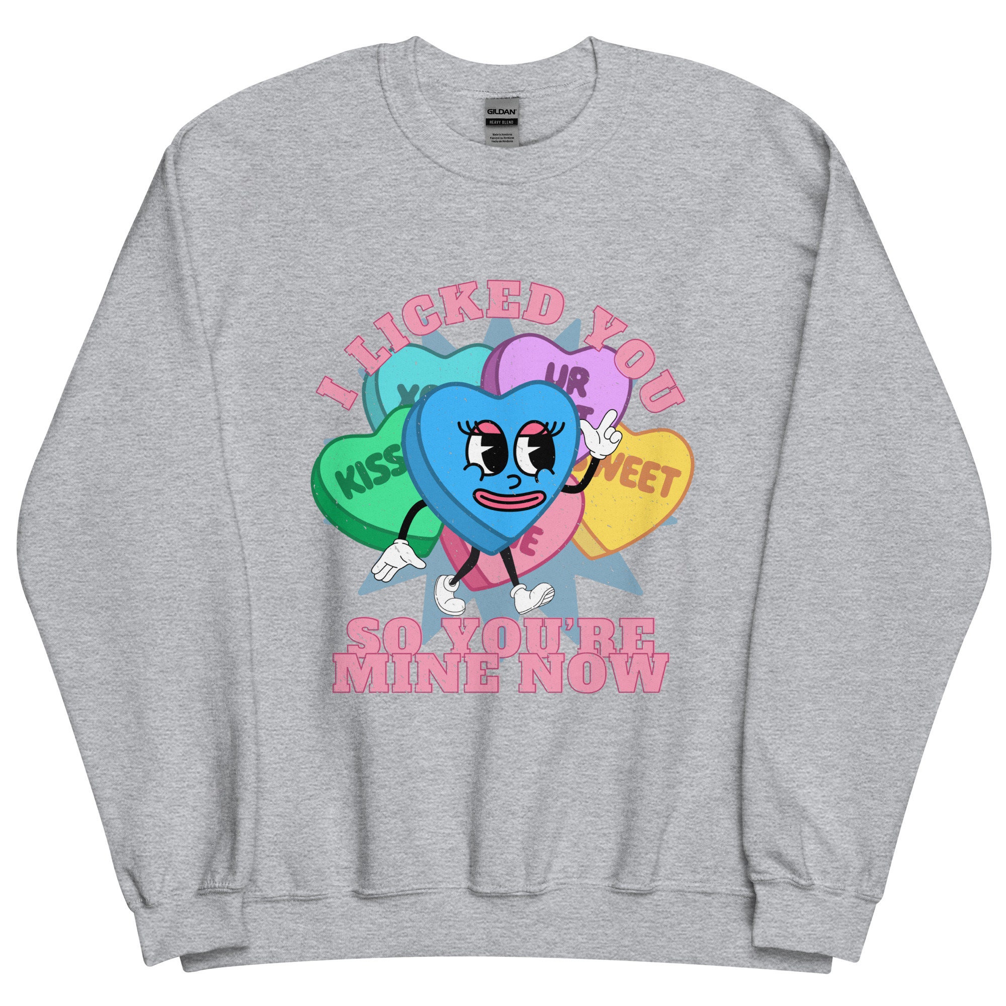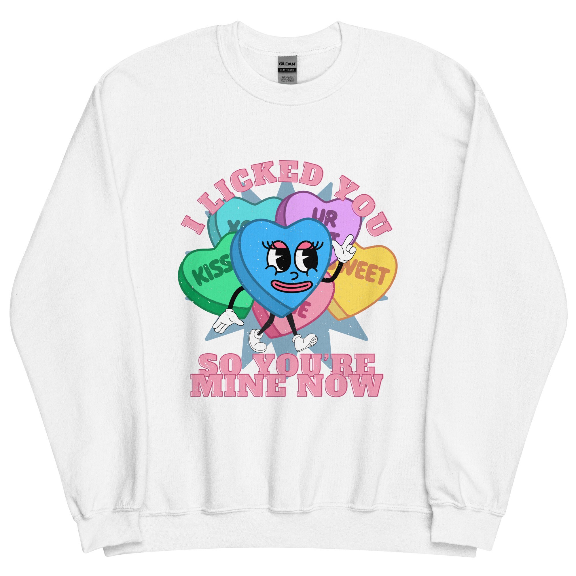 I Licked You Funny Valentine's Day Gift Mascot Retro Distressed Conversation Hearts Gift Cartoon Face Retro 90s 70s Unisex Sweatshirt