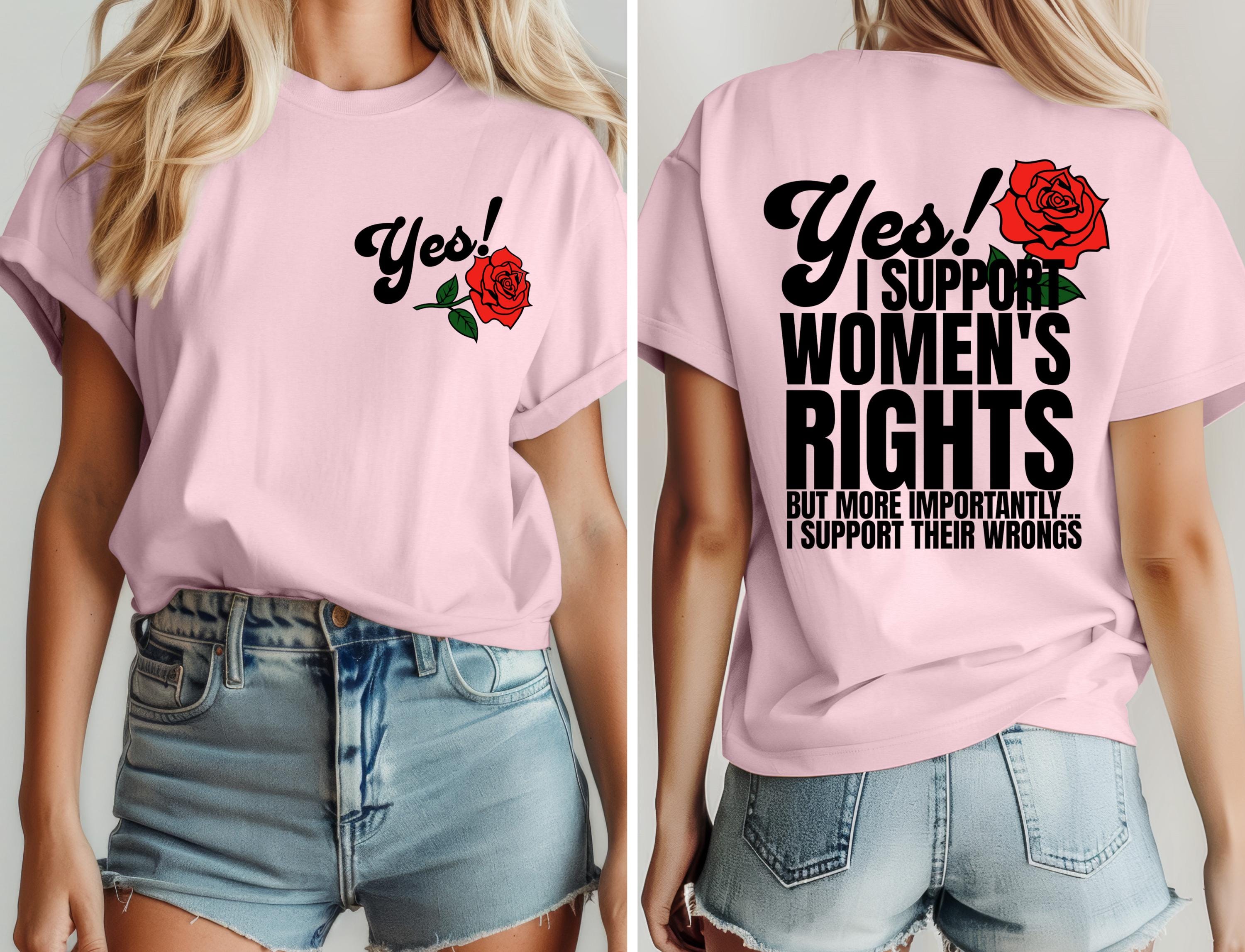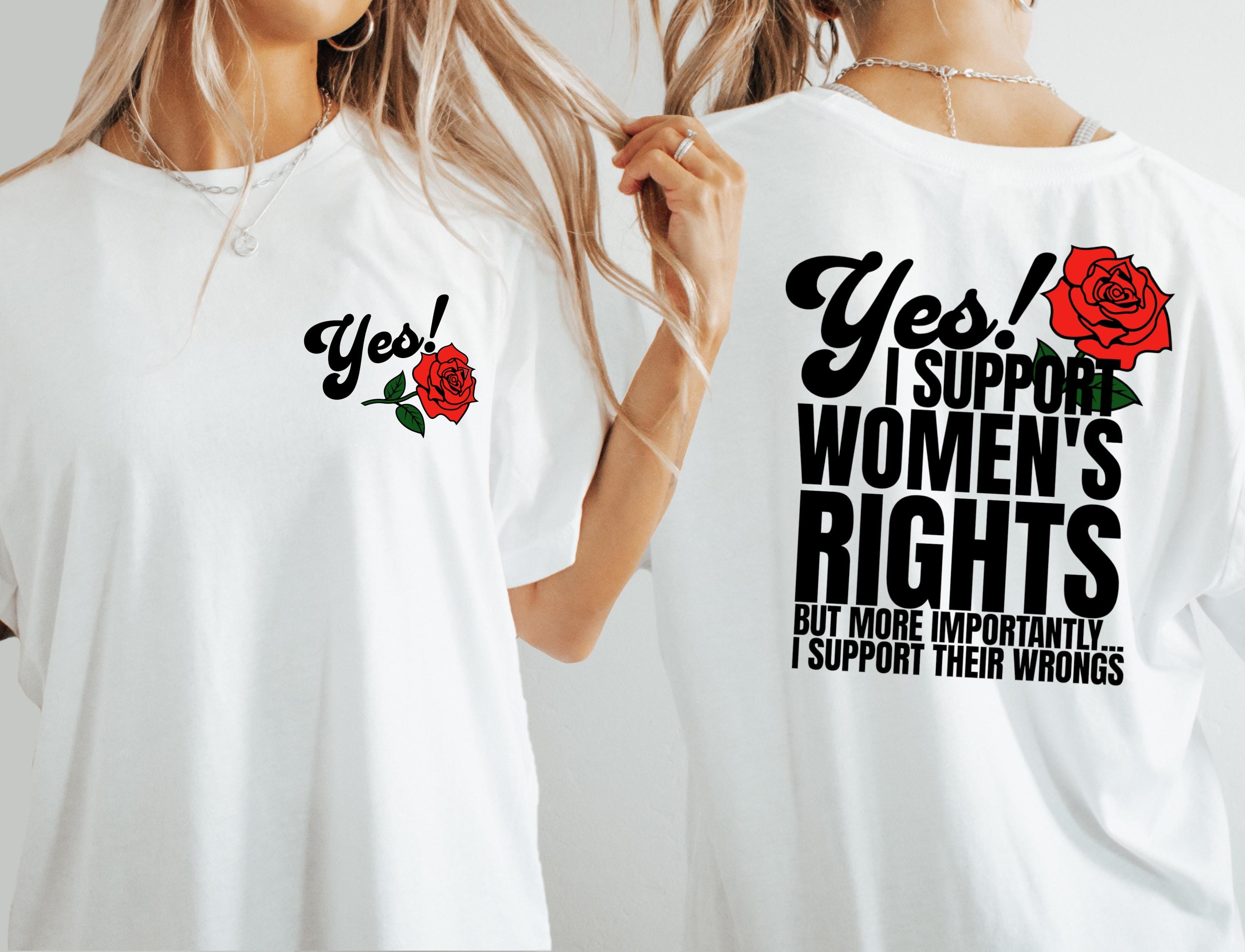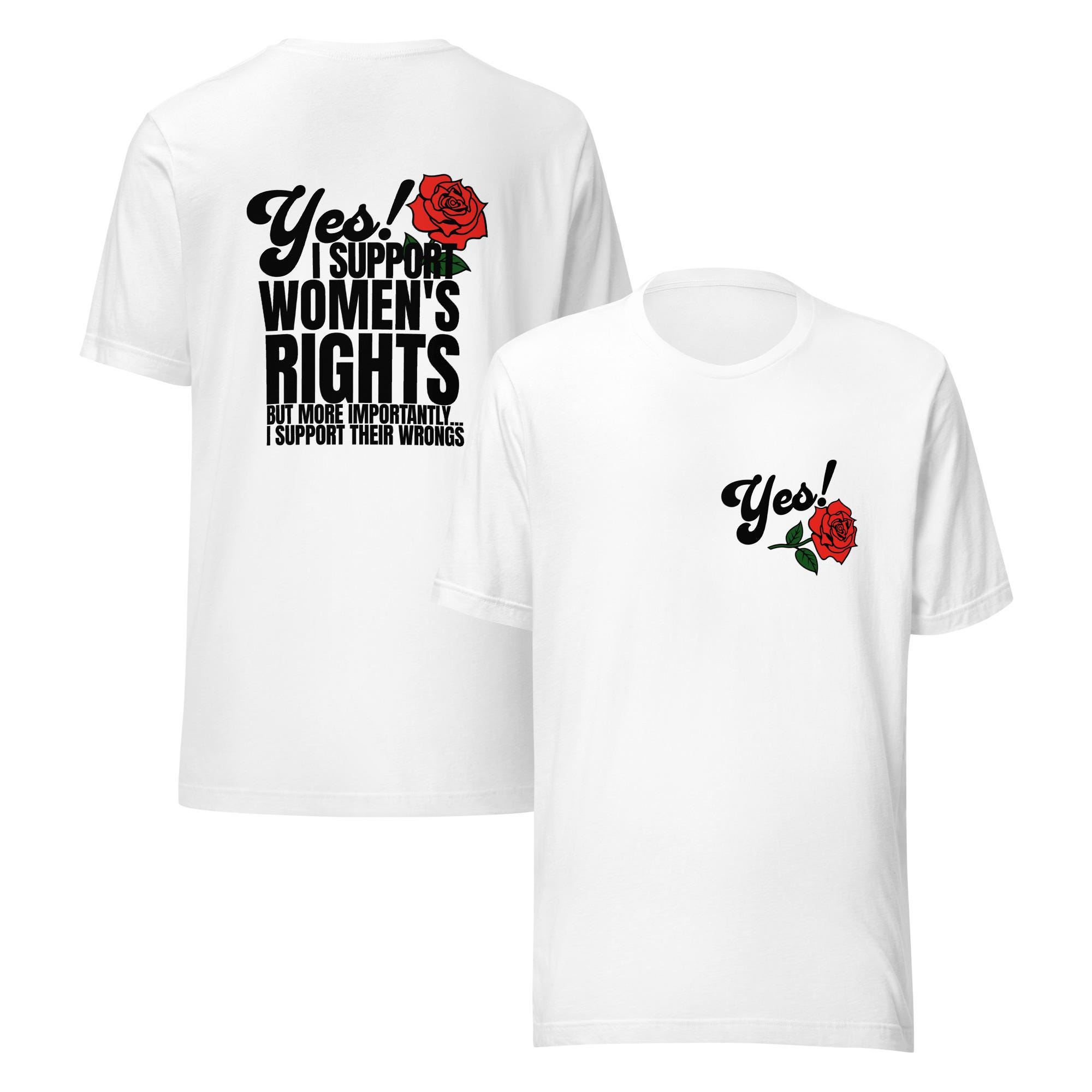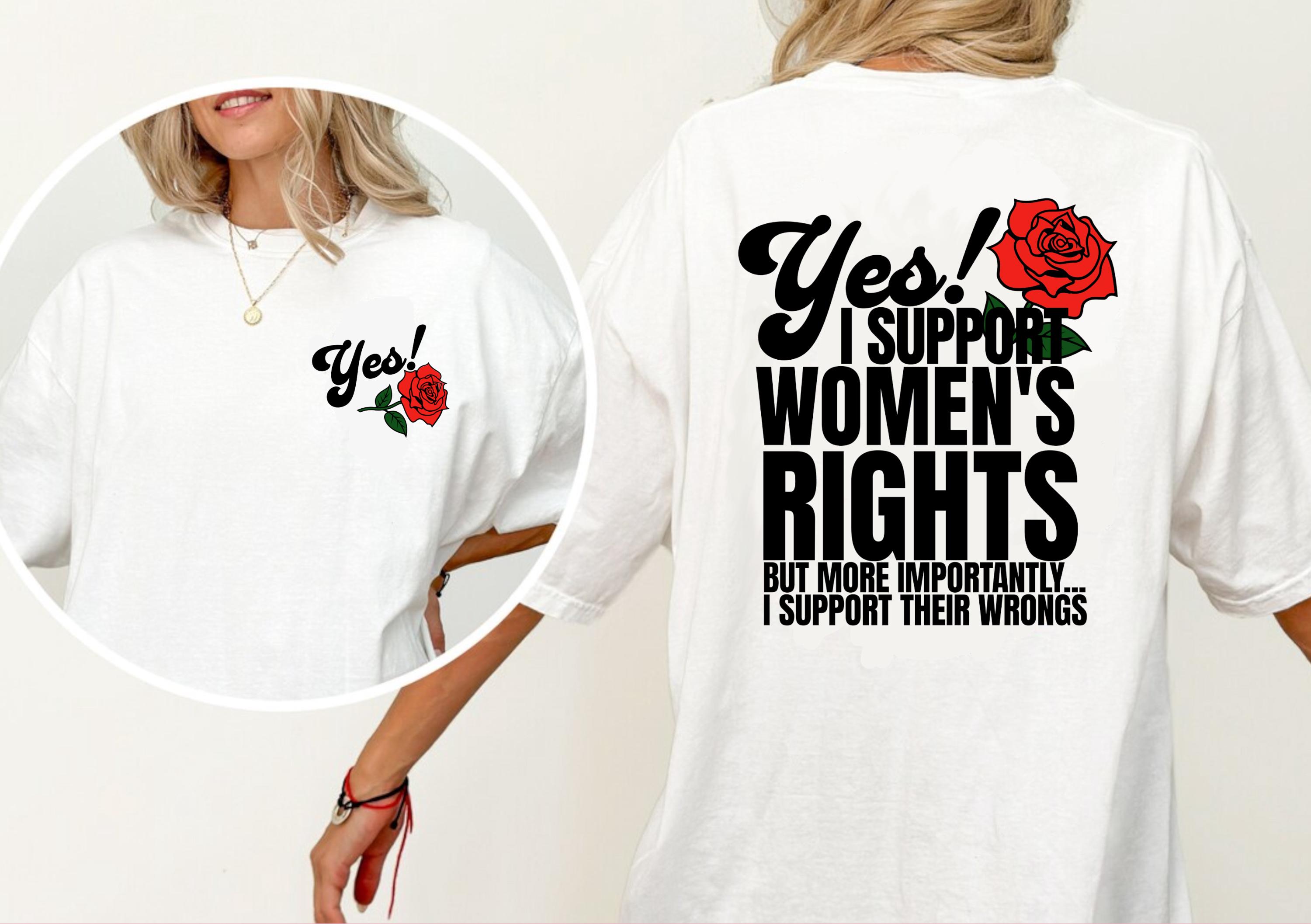 Yes! I support women's rights but more importantly their wrongs. Double sided tee.