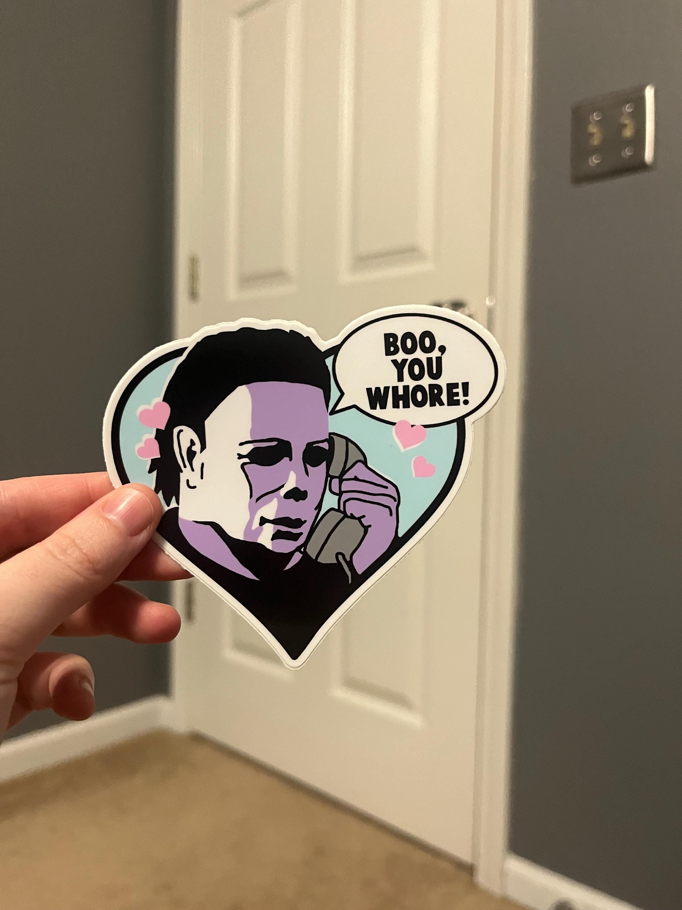 Boo You Whore Michael Horror Mean Girls Parody Stickers Decals cute movie kawaii 80s Slasher Halloween