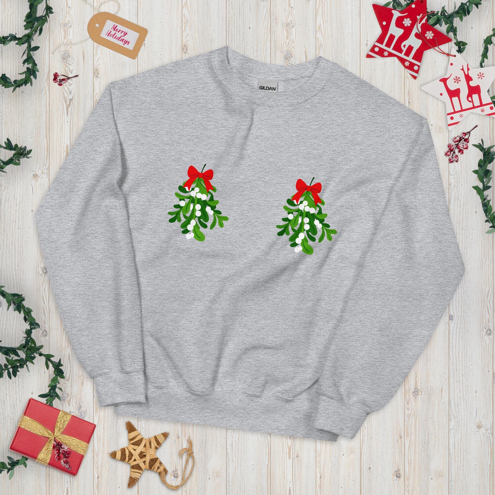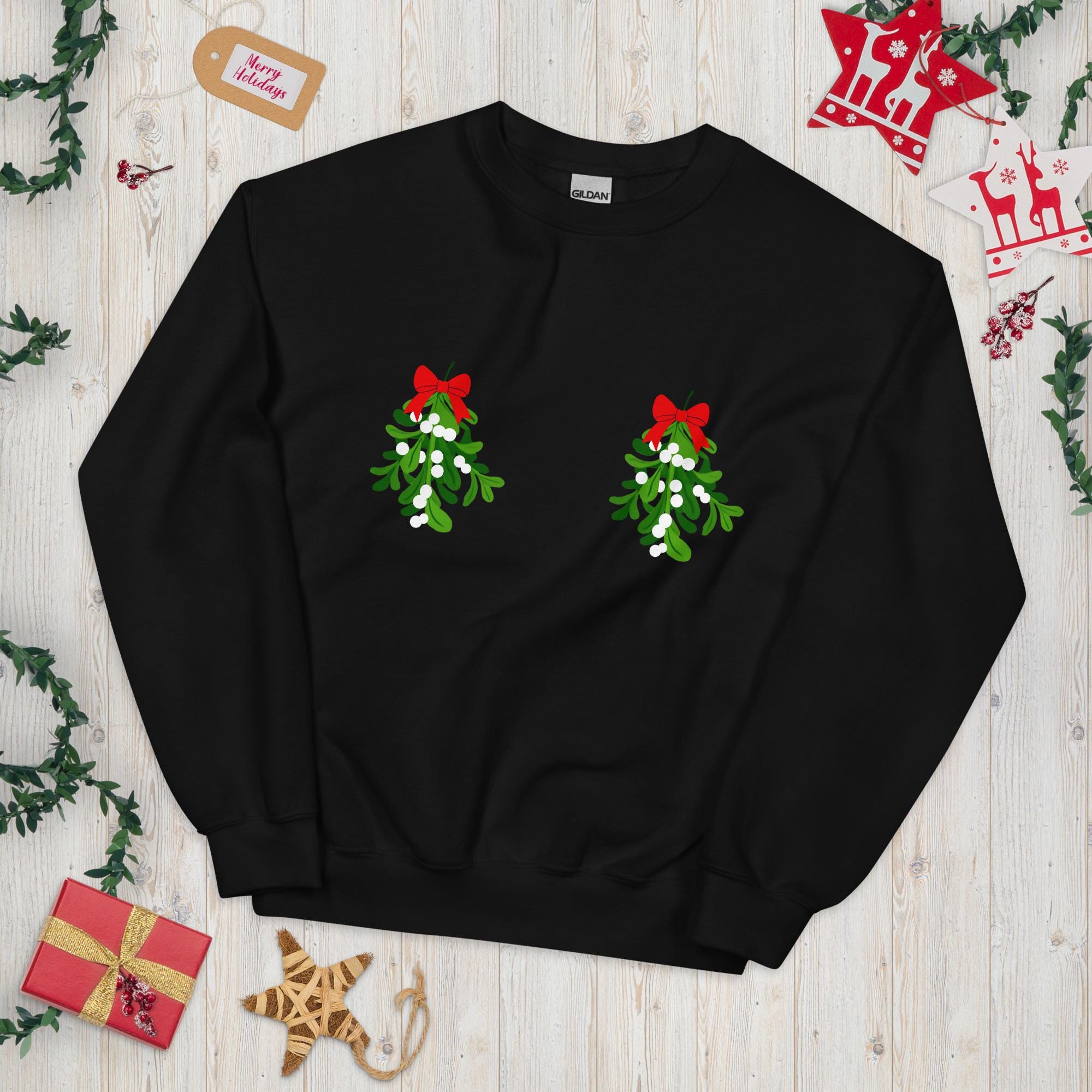 Mistletoe Pasties, Holiday, Ugly Sweater, Christmas, Boobs Funny Unisex Sweatshirt